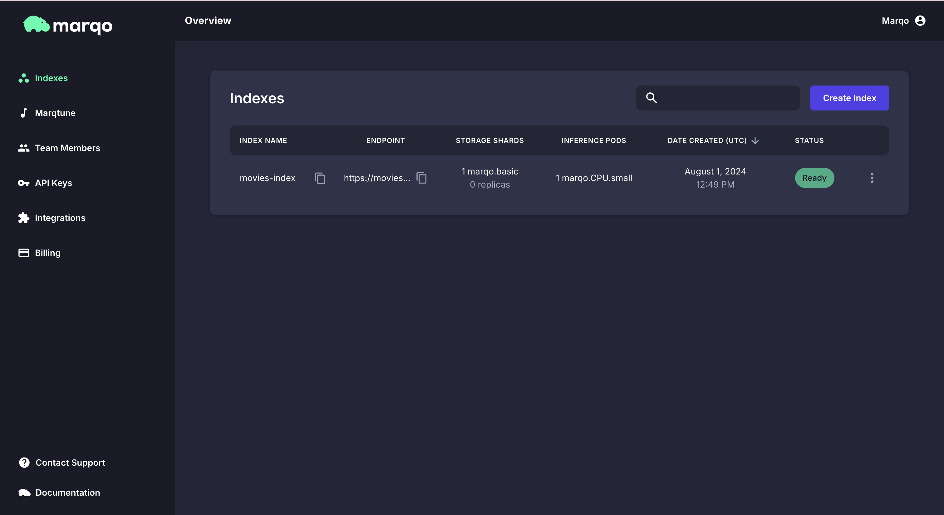 The Marqo Cloud Indexes UI will also populate with this model: