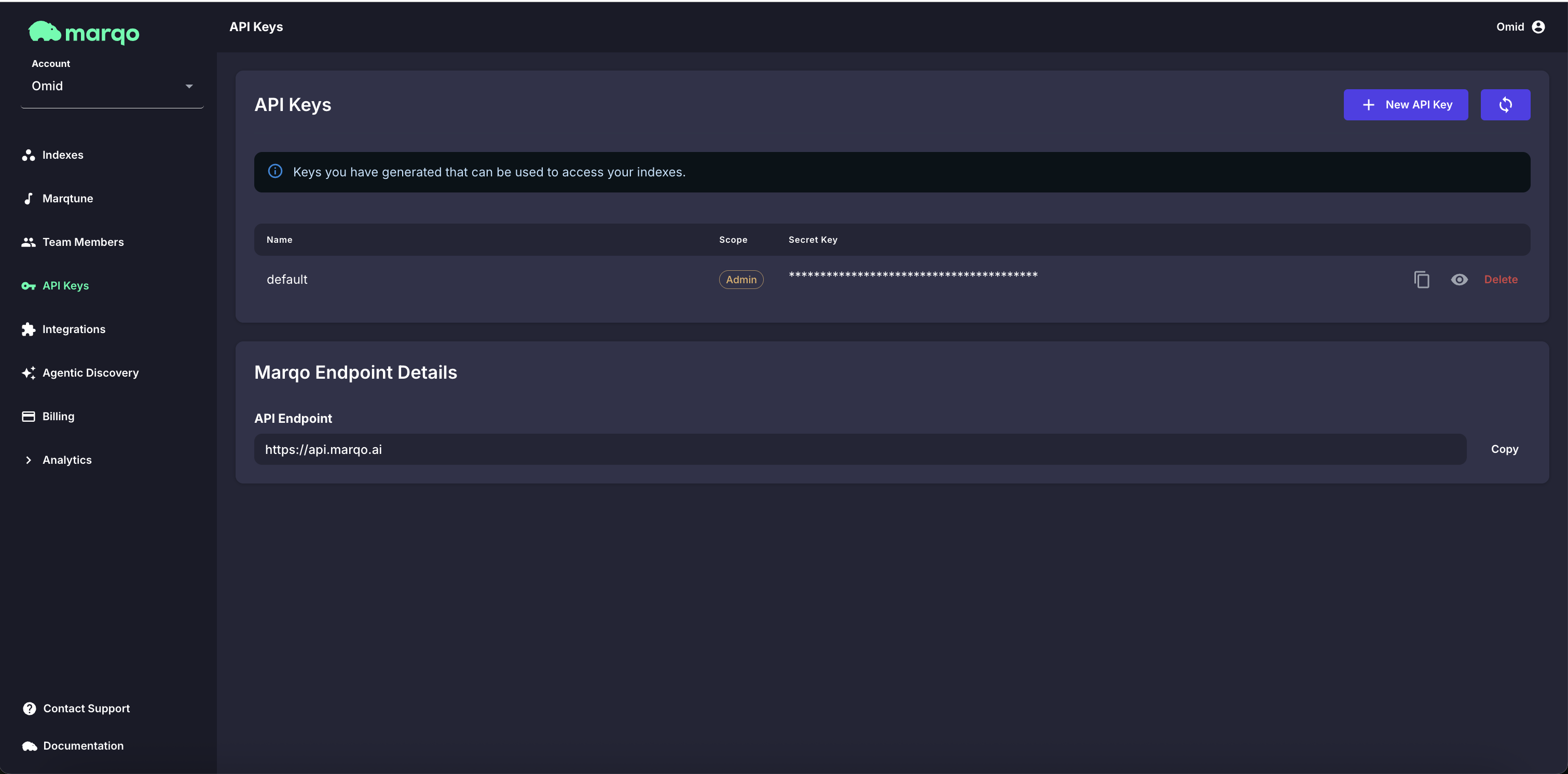 Find and Manage Your Marqo API Keys