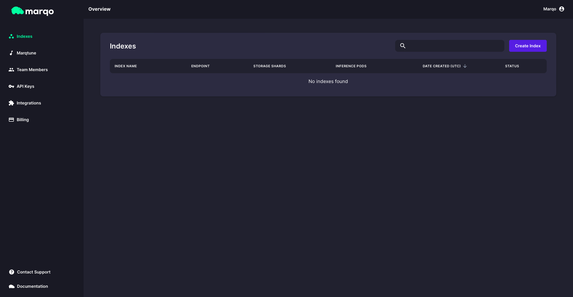 When doing so, you will be greeted with our Marqo Cloud UI: