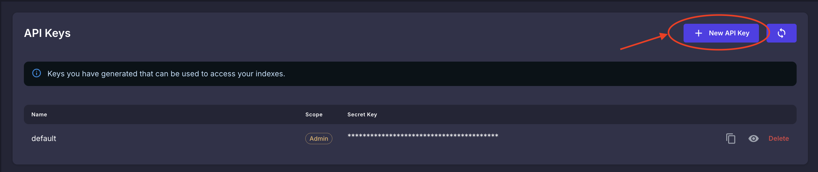 Click on the ‘+ New API Key’ icon in the top right corner of the ‘API Keys’ section.